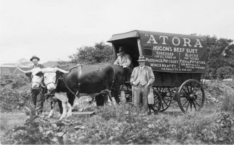 "Atora", producers of beef suet, was founded by a Frenchman, Gabriel Hugon, living in Manchester, in 1893. The present owners of the brand, McDougalls Foods Ltd., have provided the folowing information: "Between 1893 and the early part of the last war, Atora Suet was transported in colourful wagons bearing the Atora name, pulled by two bullocks. It turned out to be one of the best publicity stunts run by a nationally known firm. Later these wagons joined the famous Chippperfields Circus and took part in parades up and down the country." |