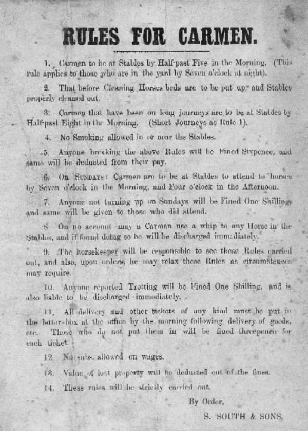 Update No 15 mentioned horses as a major asset of the Potteries and their importance is shown by the Rules for Carman displayed for the South employees: