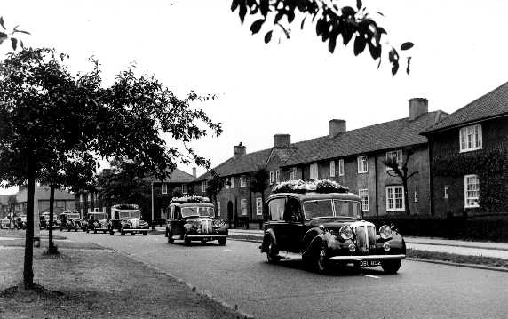 The funeral of Samuel(2) took place on Thursday 21 June 1956. The cortege was lead by three hearses conveying the wreathes received. His widow, Emily Maud, travelled in the Armstrong Siddeley (Update No 8) accompanied by her three surviving sons. On the journey to St Benet Fink's Church the procession halted in front of Samuel South & Sons in tribute to the 68 years that he had devoted to the family Pottery. After the church service the cortège made its way onto the Great Cambridge Road (A 10) and travelled north, with a police escort, to Edmonton Cemetery for the committal. The traffic signals, at the junction with White Hart Lane, changed to red as the hearses passed through and Samuel(3) instructed Charles Tompkins to follow them against the light. The remainder of the procession of cars followed this example. |