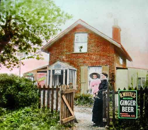 Devonshire Hill Cottage (above) stood to the north of Devonshire Hill Lane about halfway between River House and Devonshire Hill Farm. The local historian, Fred Fisk, makes reference to the cottage in his "History of the Ancient Parish Of Tottenham" 1923 (Second Series):- "On each side of the lane, a little farther [from River House], is grass; the ground here is very boggy, and there are several ponds. A pretty cottage recently stood on the right, adding to the charm of this spot; notice was served on the owner to make certain sanitary alterations which he was unwilling to pay for; compulsory measures were being adopted, but the owner scored - he pulled the cottage down!" The cottage is not shown on the 1913 OS map and, therefore, had disappeared by the time that Samuel(2) moved to River House in 1917. In 1891, the cottage was occupied by James Abrams, a farm labourer, and his family. By the time of the 1901 census, James Killey, a gold and silversmith, and his wife, Maud, were the occupiers. Devonshire Hill Lane was a popular destination for Tottenham residents taking a "country stroll" and a stile, opposite River House, by the abandoned bed of the New River, gave access to a footpath leading to Weir Hall. The occupiers of the cottage obviously took advantage of the opportunity to sell refreshments to this passing trade. In addition, Hilda Beech has recalled :- "It [Devonshire Hill Lane] was a favourite spot for walks and picnics in the fields. One enterprising man who worked at the potteries used to set up a stall by this stile for the sale of soft drinks." Sweets and refreshments were also sold at Devonshire Hill Farm. |