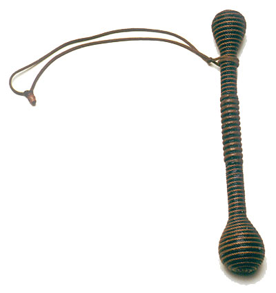 One of the tasks of the young Samuel(2) was the collection of monies due from the customers of the Potteries. It was a cash business and the return journeys were often through lonely lanes and streets. Samuel(2) equipped himself with a "Life Preserver" and horn whistle for protection and to raise the alarm in the event of criminal attack. The "Life Preserver" is a formidable weapon having a flexible shaft, 8" long, possibly of whale-bone, and a lead weighted end, bound with cord. In use it was intended to be aimed at the arms or legs in order to disable the assailant. A blow to the head could easily result in fatal injuries. There is no record of the "Life Preserver" having been used in anger and it remains a serviceable weapon. |