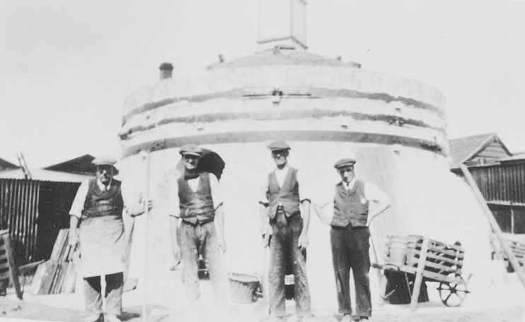 (12) Outside kiln at Potteries - date unknown - John South on right.
